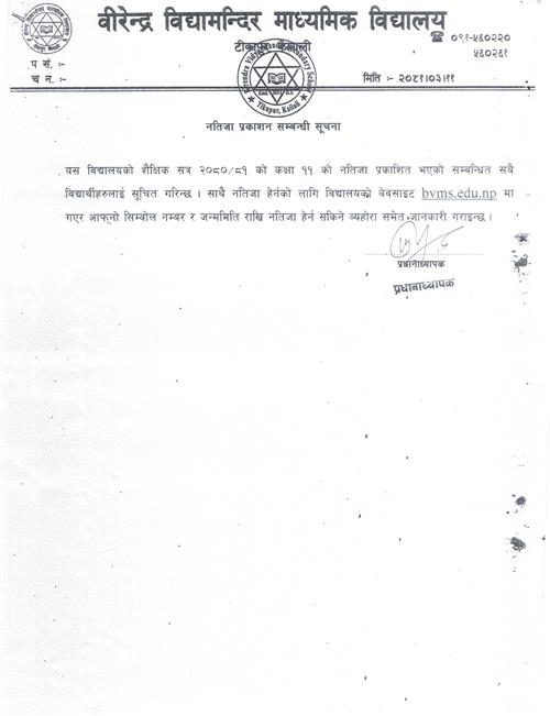 शैक्षिक सत्र २०८१ काे कक्षा ११ काे नतिजा प्रकाशन सम्बन्धी सूचना