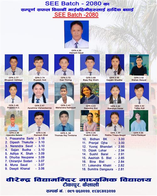 हार्दिक बधाइ SEE 2080 Batch
