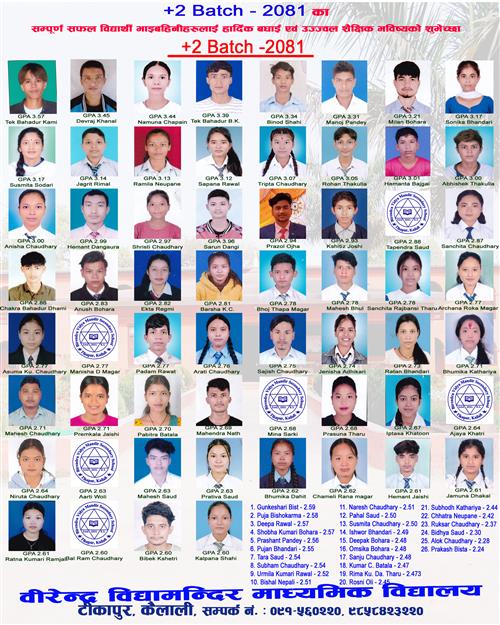 Congratulation to the students who achieved remarkable success in class 12 board examination 2081